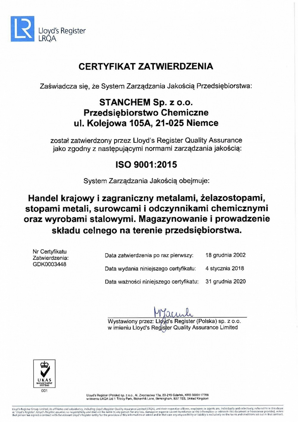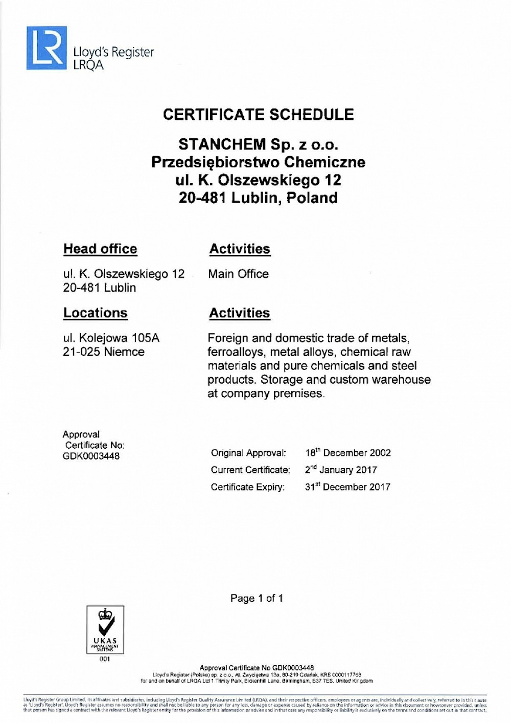 Lloyd's Register LRQA - Certyfikat Zatwierdzenia